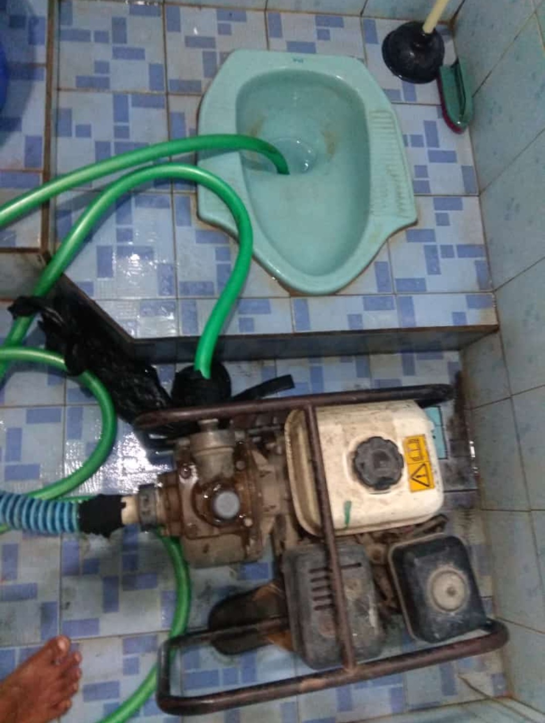 Penyedotan kotoran atau lumpur yang menyumbat jalur pembuangan.