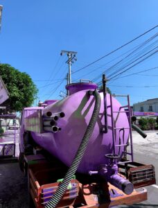 Penyambungan Selang Setelah tangki sedot tiba di lokasi, selang besar akan disambungkan dari tangki ke dalam septic tank.