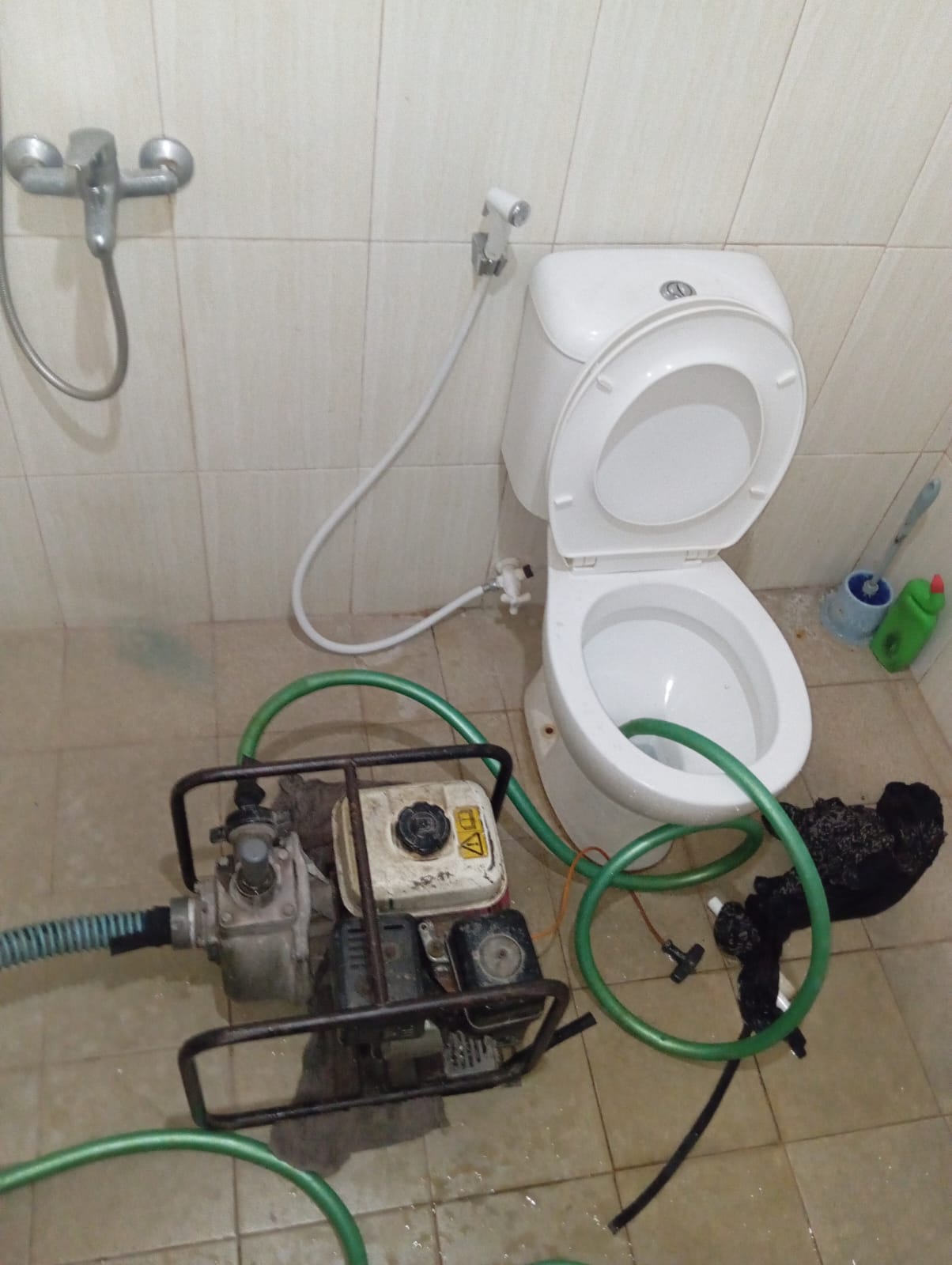 Limbah meluap ke kamar mandi.